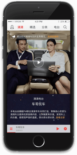 滴滴版蜻蜓FM是由蜻蜓FM联合滴滴专车共同打造,旨在为滴滴车主提供优质音频内容。
